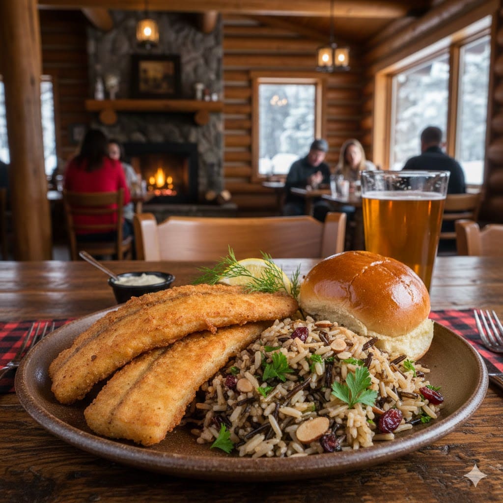 Sides served with this delicious walleye include wild rice pilaf, fried potatoes with onions and pork and beans. Enjoy!!!